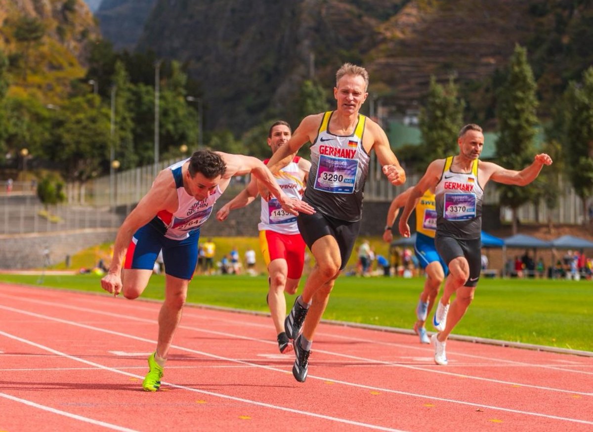 Auch Dr. Christian Povel (M45) ging an den Start. Er konnte sich über die 200 Meter über einen Platz im Halbfinale freuen. Diesen nutzte er und überquerte die Ziellienie mit einer neuen persönlichen Bestleistung von 23,27 Sekunden. Diese Zeit ermöglichte ihm den Startplatz fürs Finale. Hier konnte er sich abschließend den sechsten Platz sichern -> zeitglich mit dem fünften Platz den ebenfalls ein Deutscher belegte. Erwähnenswert hier: Wäre Christian hier die gleiche Zeit wie im Halbfinale gelaufen, hätte er sich den zweiten Platz sichern können!