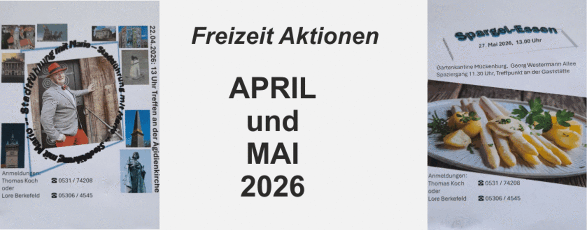 Anmelden und Infos bei Thomas Koch Tel: 0531 - 74208 oder Eleonore Berkefeld Tel: 05306 - 4545