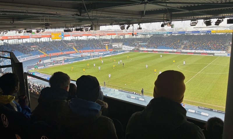 Im Rahmen des Heimspiels von Eintracht Braunschweig gegen den Karlsruher SC durften sich sieben Kinder und Jugendliche sowie drei Betreuer der Jugendhilfe Jägerhof über ein ganz besonderes Erlebnis freuen. In Kooperation mit Volkswagen wurden sie in die Volkswagen Loge eingeladen und erlebten den Heimsieg der Blau-Gelben aus einer außergewöhnlichen Perspektive.